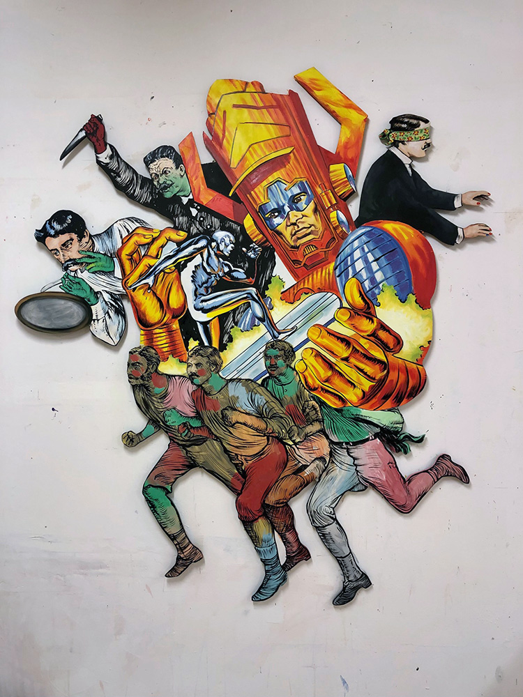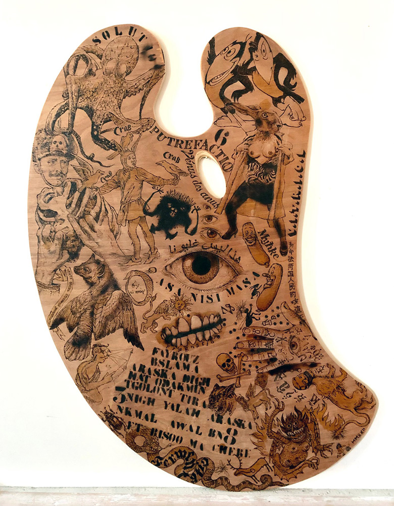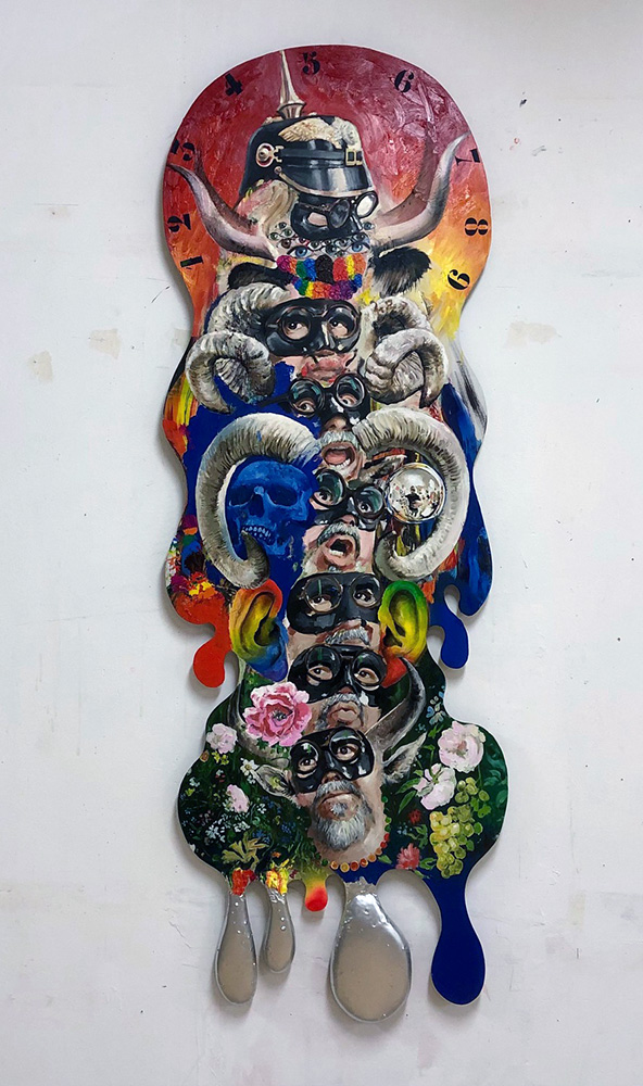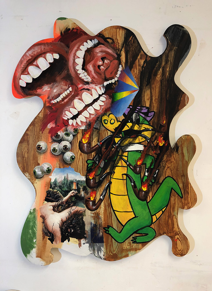 Huile et collage sur bois, 200x160cm