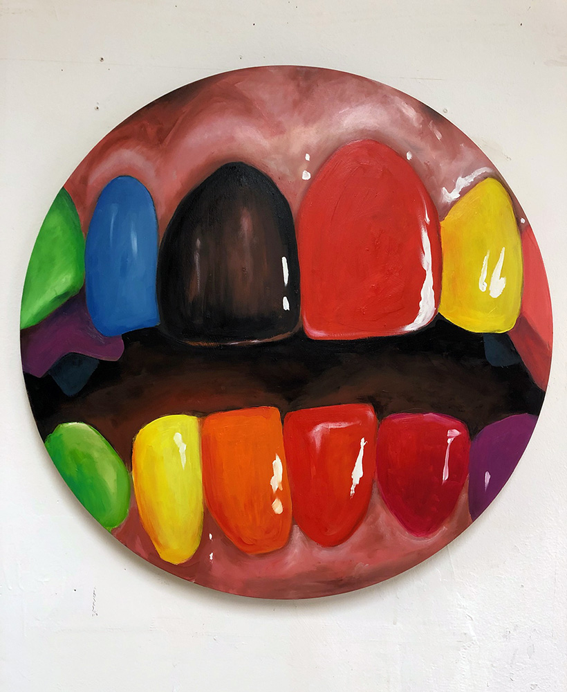 Acrylique, paillettes et confettis sur papier, 61x55 cm