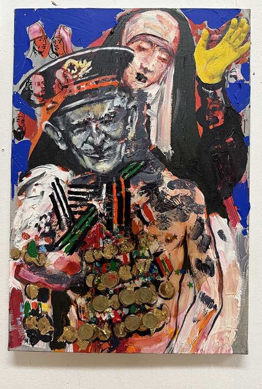 Huile, résine, feuille d'or sur toile, 45x38cm |