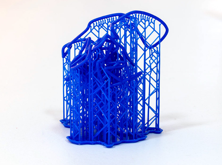 Série de 10 volumes imprimés en 3D (stéréolithographie), résine calcinable (bleue), 15 x 15 x 15 cm env./pièce |