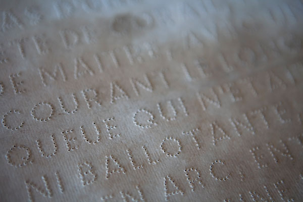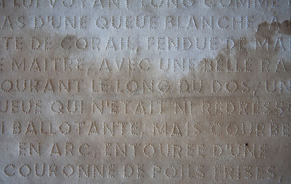 « A partir de 1897, Félicien Marboeuf entretient une singulière liaison épistolaire avec une adolescente aveugle rencontrée lors d’une visite à l’Institut des Quinze-Vingts. Cette collection étranges de citations est composée d’un choix de textes empruntés à une anthologie de la littérature érotique. Afin de les rendre lisibles pour sa destinataire, il improvise une sorte de braille.