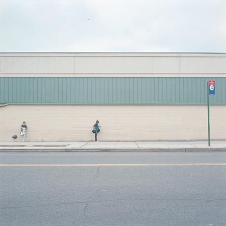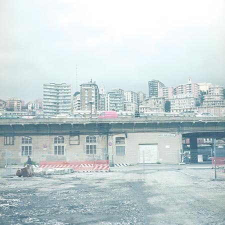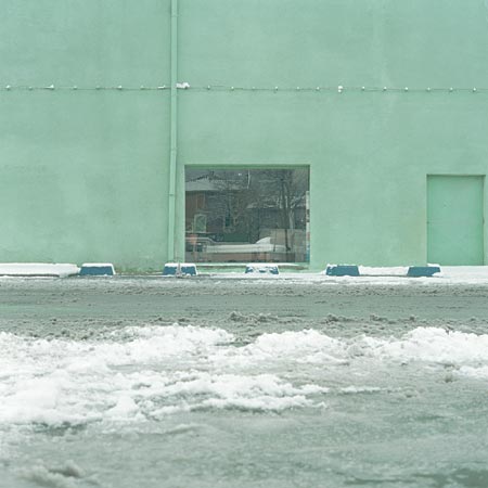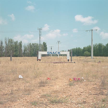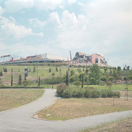 Pour affiner cette vision dune manière plastique, jinterviens de points de vue lointains, ce qui provoque une tension déroutante, voir la perte de lhumain dans ces paysages « sans-lieu ». La douceur des couleurs est le résultat dun choix esthétique de mettre à distance la représentation photographique.