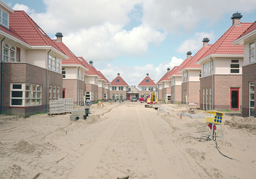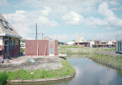 Le protocole ayant conduit à la réalisation de Land d’André Mérian tient en quelques mots : montrer aux Pays-Bas le moment ou la ville devient campagne. Derrière cette apparente simplicité de l’énoncé se cache en fait un projet d’une rare complexité. Sous jacent, pointent évidemment les enjeux liés au document, notion essentielle en photographie contemporaine depuis que l’on sait combien celui-ci est par essence impur, instable. Évidemment, cette crise de la représentation se trouve précipitée par l’irruption du numérique, technique qui ne fabrique plus de l’image mais bien des visuels toujours manipulables. D’une certaine manière, Land se veut une réponse à cela, à ce deuil porté par certains envers la photographie. Le requiem qu’il compose se fonde sur le même lamento : la photographie n’offre plus cette rassurante possibilité de témoigner du monde puisque l’image telle qu’elle est véhiculée par les médias, par l’industrie culturelle et par les réseaux du net n’inspire plus aucune confiance. Toujours en mutation, toujours en recherche de spectaculaire, elle ne serait plus qu’un fantôme du réel. Oser prendre son appareil photographique pour saisir un état de notre quotidien semble relever de la gageure. Or, pour André Mérian,c’est justement dans cette période de doute qu’il convient de redéfinir ce qu’est une image, ce qu’elle véhicule, ce qu’elle dit de nous et de notre univers. Ce pari peut paraître d’autant plus risqué que l’objectivité possède en photographie une longue tradition.