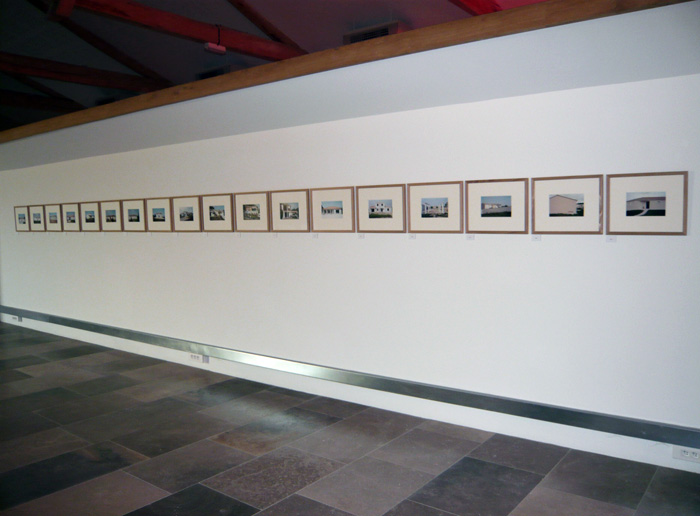 La critique de notre temps se trouve ailleurs, elle est implicite, surgissant non de chaque image mais de la série et de la manière dont s’organisent les séquences sur le mur. Ces photographies valent évidemment pour elles-mêmes, chacune exposant sa singularité. Mais une fois assemblées en ligne, elles établissent une tension entre lieux réels et lieux imaginaires, à la fois présents et en devenir. Là se cache l’affection d’André Mérian pour ses condisciples, et pour l’humain en général. Car ce qui étonne dans cet inventaire architectural, ce sont ces réinventions, ces aménagements, ces fantasmes de propriétaire terrien.