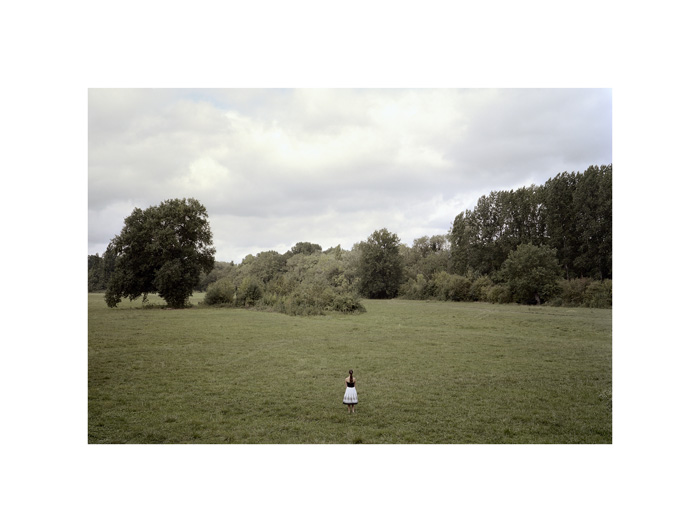 De tous, André Mérian est sans doute le plus objectif, celui qui se confronte le plus directement avec l’épaisseur du réel. C’est d’ailleurs une de ses images qui ouvre l’exposition. Une femme, de dos, scrute un paysage faussement bucolique. Le champ semble en jachère. Les taillis cachent sans aucun doute une faune riche. Mais rien n’est ouvertement montré si ce n’est ce rapport étrange, presque sur réaliste entre une figure très théâtralisée et un décor abandonné, visible dans ces hautes herbes et l’absence de tout chemin. Lire la suite du texte de Damien Sausset…