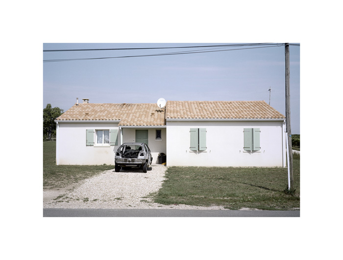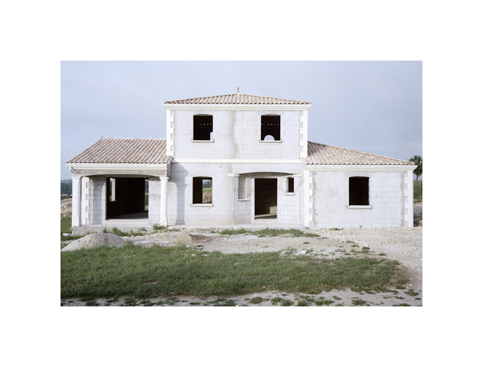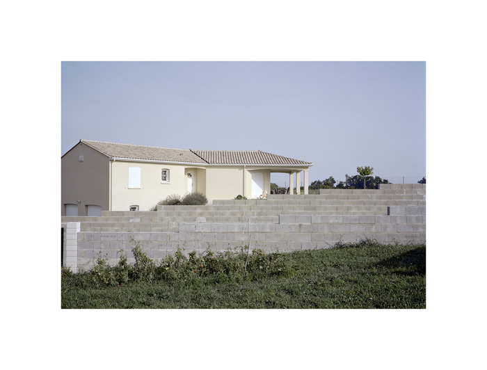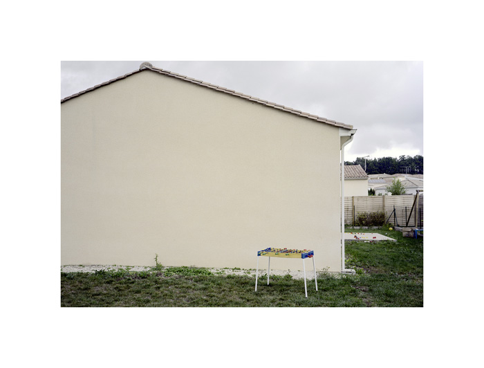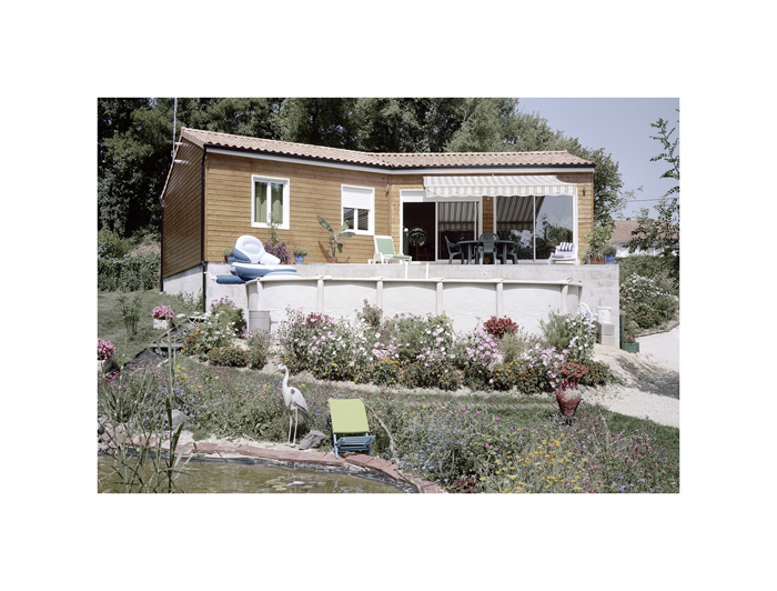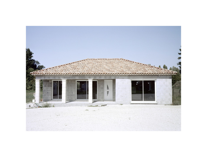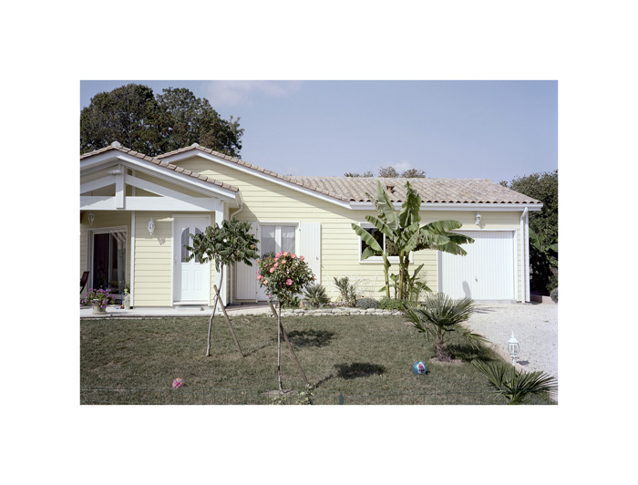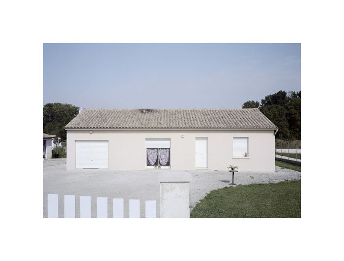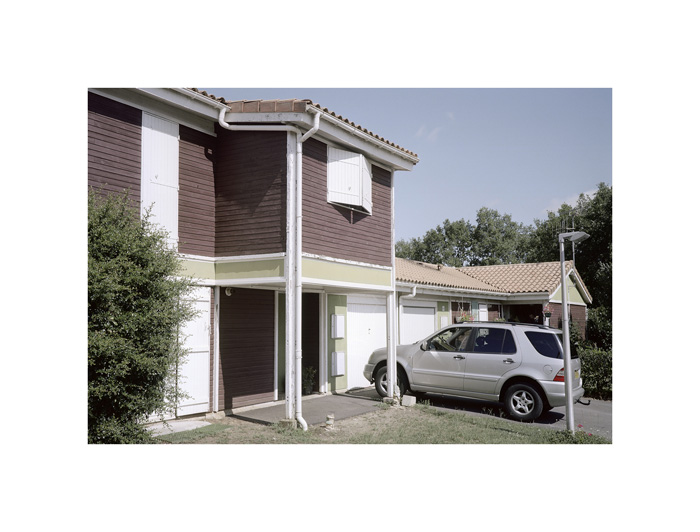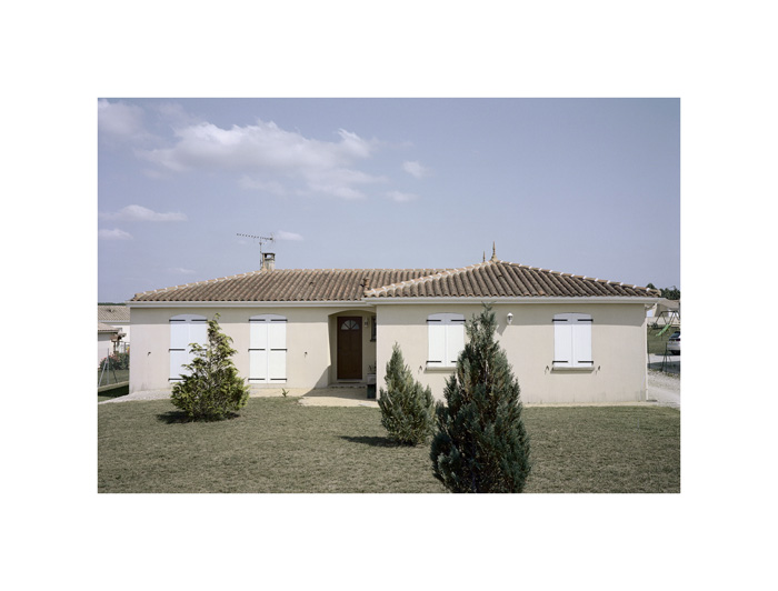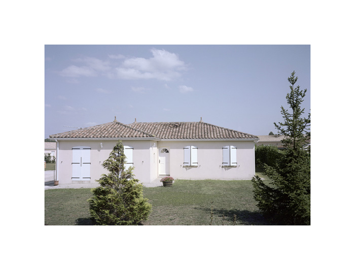 Les photographies d’André Mérian figent le rapport entre espace et lieu. La tension est particulièrement exemplaire dans la série ici présentée. Le protocole de ce travail reste d’une extrême simplicité : attester d’un territoire restreint en se focalisant sur l’habitat pavillonnaire. L’exploration se mue ici en apprentissage puisqu’André Mérian pense le territoire comme un champ d’expression et de culture.