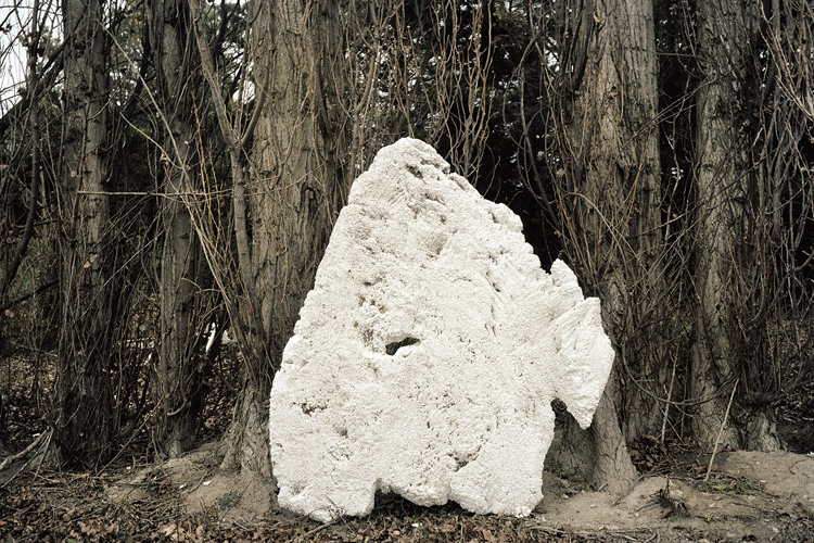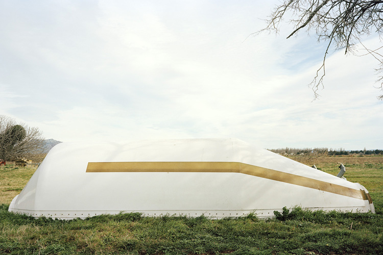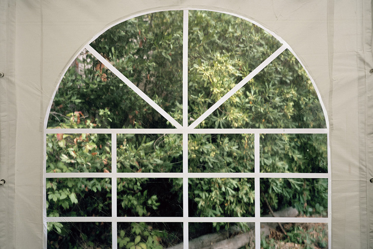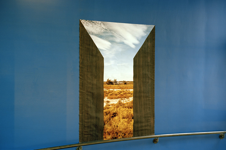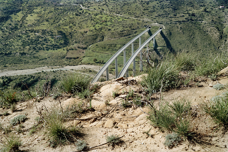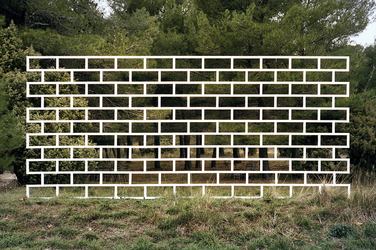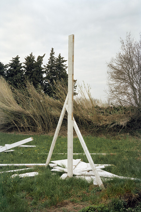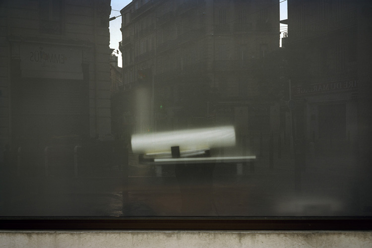 Avec Nevermind, André Mérian amorce un nouveau cycle se saisi du réel. Bien que plongé dans un processus de capture objectif du monde, cet ensemble d’images amplifie le jeu trouble que tout regard entretient avec le processus d’identification à l’œuvre en photographie. Ce qui est là annonce une évidence. Il s’agit bien du monde tel que nous le voyons chaque jour. Mais ces images énoncent autre chose de plus essentiel, l’ordre caché presque invisible qui se noue entre les choses. Car Nevermind est avant tout un savant jeu de révélation, révélation des petits arrangements fortuits des choses, révélation aussi que notre univers n’est pas aussi continue que la raison aime à le penser, qu’il est au contraire maillé par tout un réseau discursif, qu’il est – en résumé – animé par des disjonctions diverses. Dans cette série d’images, André Mérian confronte deux modèles, l’un rationaliste propre à l’occident et particulièrement visible dans l’architecture abstraite des compositions de chaque image. L’autre, plus difficile à cerner, repose sur l’irruption fortuite de motifs « naturelles » , de motifs du merveilleux et de l’irrationnel. Que les hommes aient présidé à la création de ces arrangements tient de l’évidence, qu’un photographe ai réussi à les isoler tient lui du miracle.