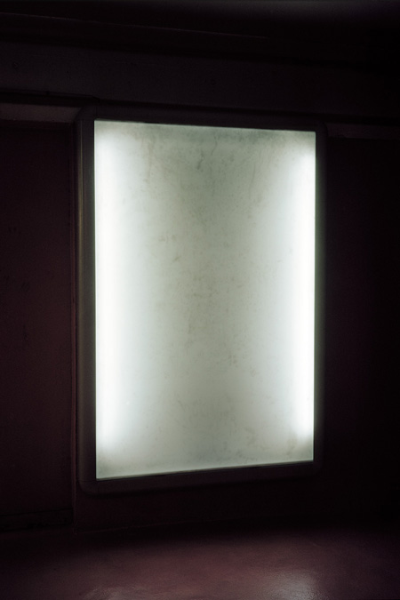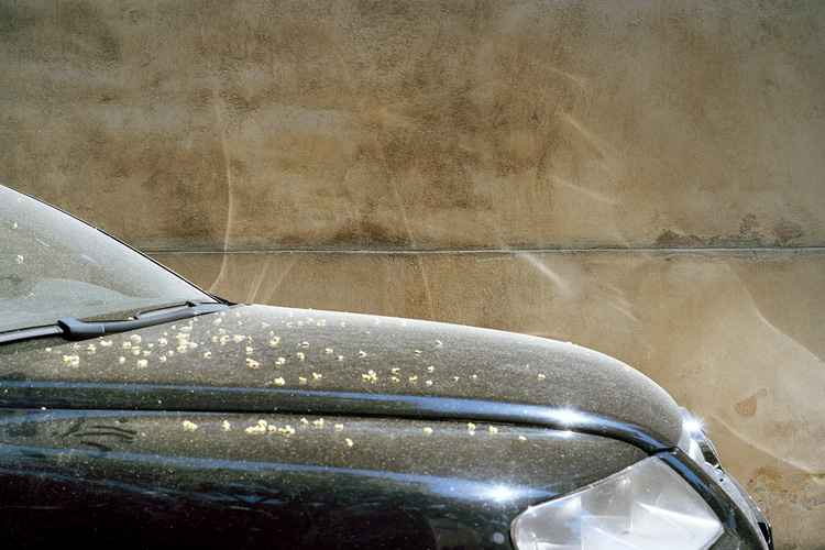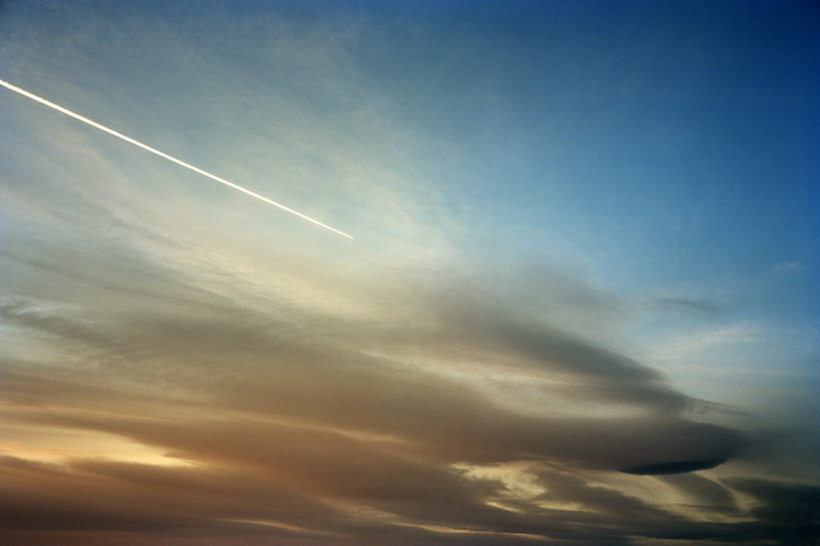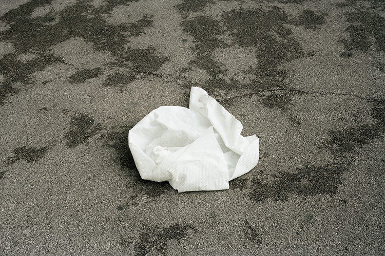 Dans Nevermind, sa dernière série photographique, André Mérian pusse à bout la logique de ses travaux précédents. L’épure y est extrême, qui laisse suspendues au bord de l’abstraction les images, pour mieux rendre visible la nature liminaire du regard. Si les sujets des prises de vue (une traînée d’avion blanche fendant le bleu du ciel, une porte entrebâillée, un capot de voiture parsemé de pétales) semblent être hasardeux, trouvés inespérément lors d’une longue flânerie, leur agencement dans le cadre répond à un strict système d’organisation, dans lequel la lumière et ses modulations jouent un rôle prépondérant. Rigoureusement construites, réfléchies donc, les images viennent contredire en quelque sorte l’insouciance qu’évoque le tire de cette série.