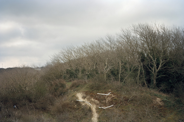 Pour cette commande j’ai choisi volontairement de m’éloigner de la « Jungle » en utilisant un protocole de prises de vues, pour documenter des itinéraires des réfugiés, à travers les paysages autour de Calais et de la jungle.