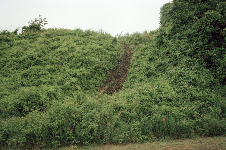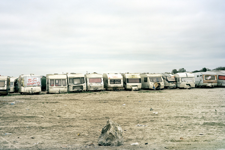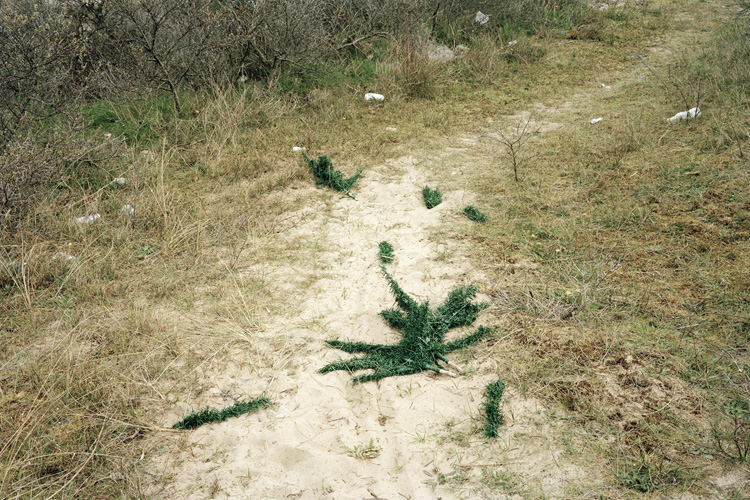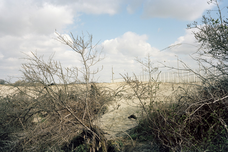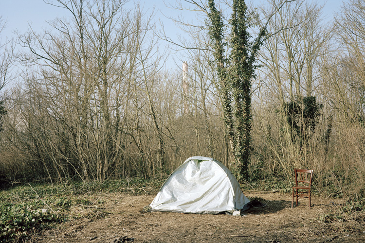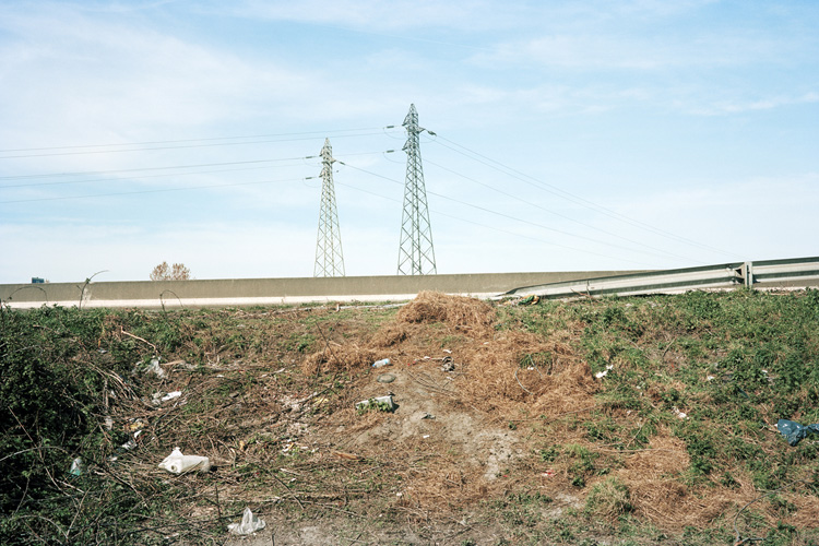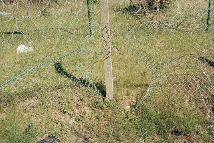 Je questionne les notions de frontières, de sécurité, de surveillance. Les chemins empruntés et certains transformés par les protagonistes, ainsi que les trace éphémères laissées dans le paysage. L’humain physiquement est absent, les réfugiés ne voulaient pas être photographiés, j’ai respecté leur volonté, c’est une forme d’effacement et d’anonymat.