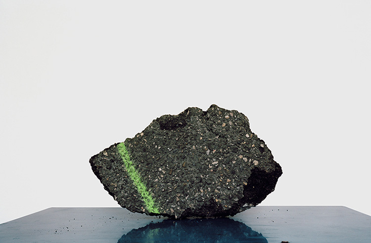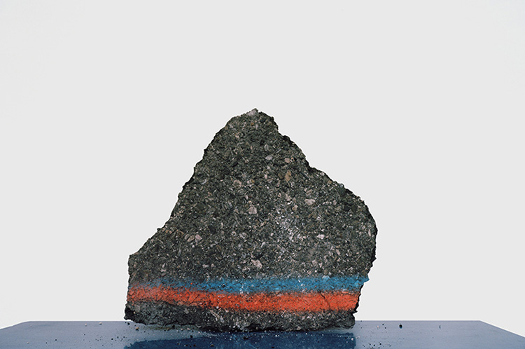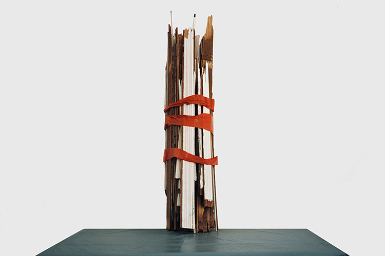 Nous devons faire le deuil du rapport hiérarchique, rassurant, entre des éléments discrets et leur supposé point commun, l’ensemble qui les réunirait au sein d’une communauté. Nous devons renoncer à chercher un ordre dans la succession de ces images pourtant rigoureusement composées. Aucun sous-texte caché ne préside à leur réunion sur le mur ou dans les pages de ce livre, aucune contrainte, même secrète. En fait, seul le hasard des rencontres a décidé du prélèvement de tel ou tel objet dans le monde désordonné qui est le nôtre. Je m’explique : au cours de ses déambulations urbaines, l’artiste a trouvé, remarqué, récupéré, parfois dans une poubelle, mais pas toujours, ces objets, l’un après l’autre, durant plusieurs semaines.