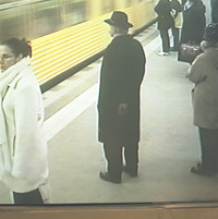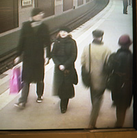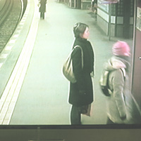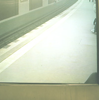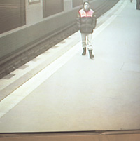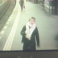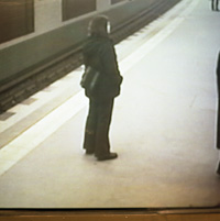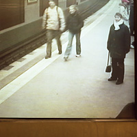 Sur les quais sont installés des écrans de surveillance vidéo, libre d’accès aux usagers. J’avais l’impression d’assister un peu à un film hors du temps, étant donné que quelques instants avant à Berlin je photographiais des zones commerciales, grands temples de la consommation, et dans les zones péri-urbaines. J’imaginais que ces gens, peut-être vivaient dans des lieux que j’avais traversé….