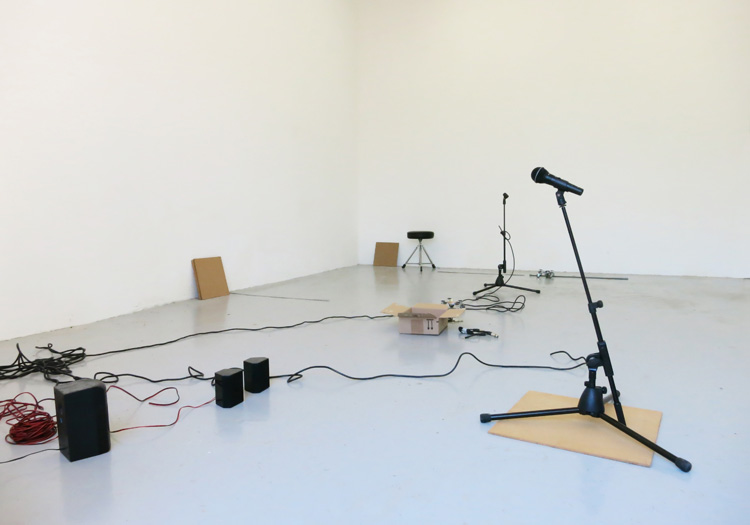 Installation préparatoire à une performance sonore, elle peut être activée ou pas, si elle l’est, la mise en espace des objets restera en situation à la fin de l’action. |