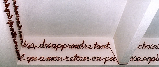 Citation de Goethe, Voyage en Italie, écrite au plafond avec des clous et de la laine rouge