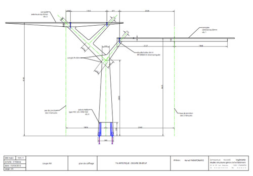 Caractéristiques techniques : Dimensions :L x H x P (en mm) : (8000 x 5000 x 5000) Matériaux : Bfup (Béton Fibré Ultra Performant) Technique de fabrication : Préfabrication par moulage Finition : Brut Pré-Étude : Géraldine Viellepeau (Architecte DPLG) Étude : B.E. Lamoureux Ricciotti Ingénierie Réalisation :Caro Ciment (Porrentruy CH.)